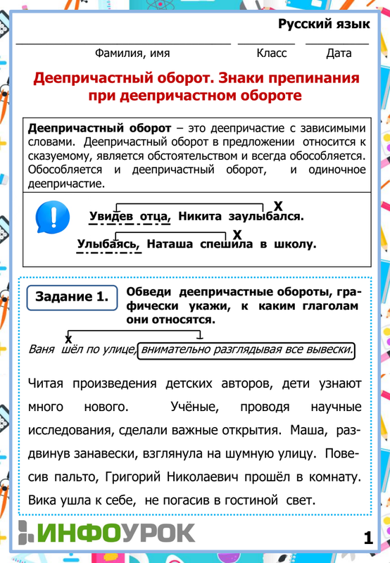 Рабочий Лист Деепричастный Оборот. Знаки Препинания При Деепричастном Обороте.