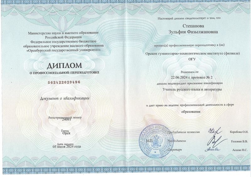 Диплом о профессиональной переподготовке