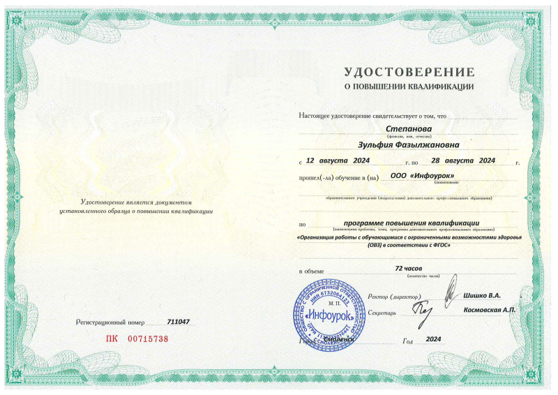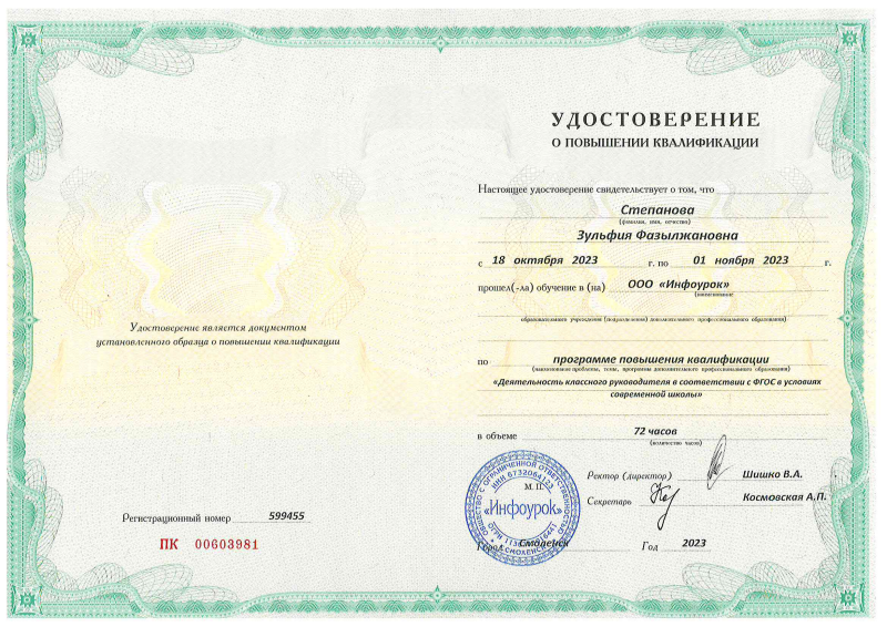 Удостоверение Классное Руководство
