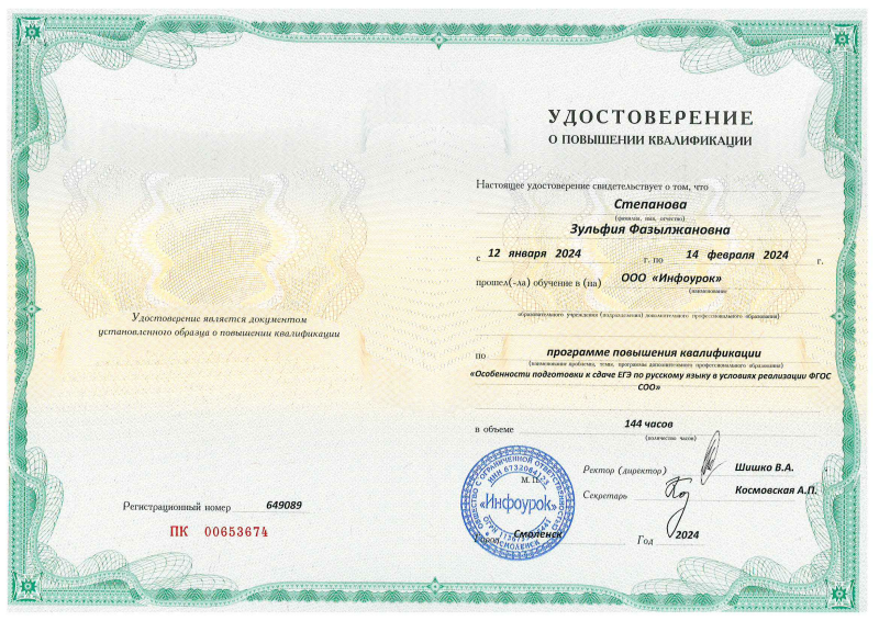 Удостоверение "Подготовка к ЕГЭ"