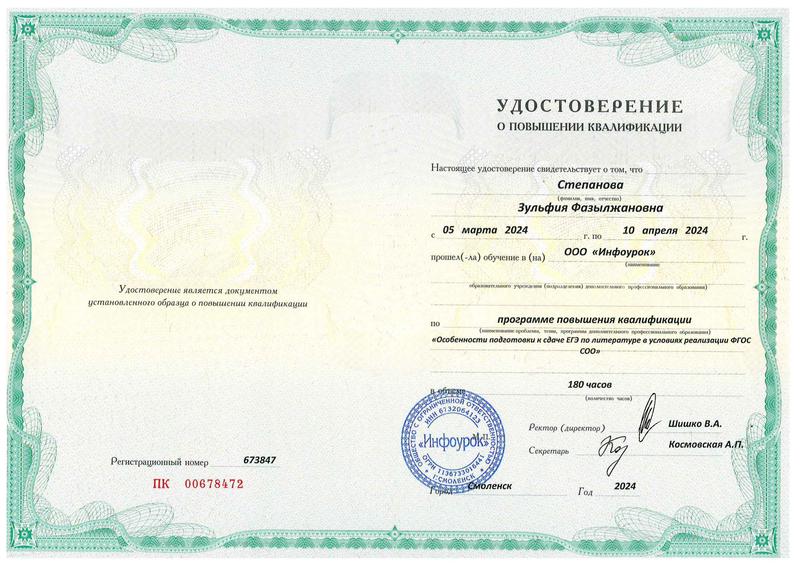 Сертификат ЕГЭ по литературе